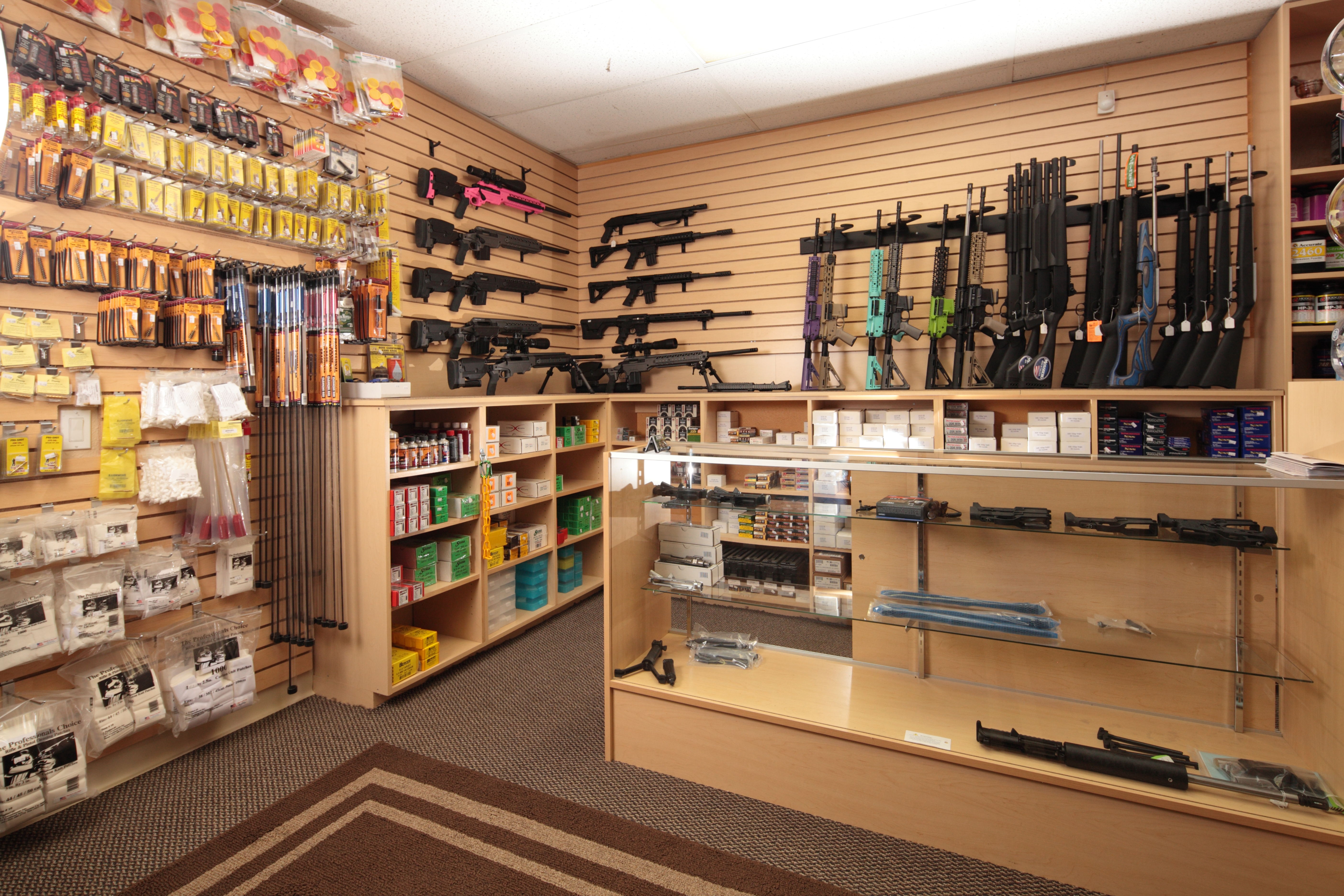 Guns and accessories. We carry multiple brands of cleaning supplies and reloading supplies. Cleaning brushes, cleaning rods, cleaning patches, cleaning solvents, bullets, reloading supplies, primers, powder, projectiles, brass.